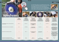 Vier Wochen lang hatten zehn unserer Leser die Schleifscheiben CC-Grind-Robust SGP Steelox im Einsatz. Selten haben unsere Tester eine so einheitlich gute Bewertung abgegeben. Natürlich gab es auch Kritik und Anregungen, aber im Durchschnitt hat die neue Schleifscheibe im Praxiseinsatz in hohem Maße überzeugt. Vor allem die hohe Abtragsleistung hat unsere Anwender überrascht. Die neue Generation von Schleifscheiben von PFERD ist eine gute Alternative zur bekannten Schruppscheibe, kann aber auch Fächerschleifscheiben in weiten Teilen ersetzen. metall-markt.net 06/21, Seite 66