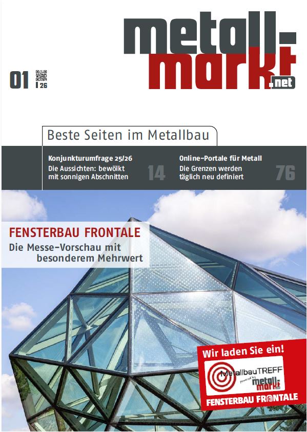 Der MetallbauTREFF ist Treff- und Anlaufpunkt für Messebesucher aus der Metallbranche. Zum dritten Mal veranstaltet metall-markt.net in Kooperation mit der NürnbergMesse auf der Fensterbau Frontale vom 24. bis 27. März 2026 in Nürnberg den MetallbauTREFF. Auch dieses Mal sind wieder spannende und vielseitige Aussteller aus dem In- und Ausland dabei und werden den Besuchern der FENSTERBAU FRONTALE unkompliziert Ihre Produkte präsentieren.