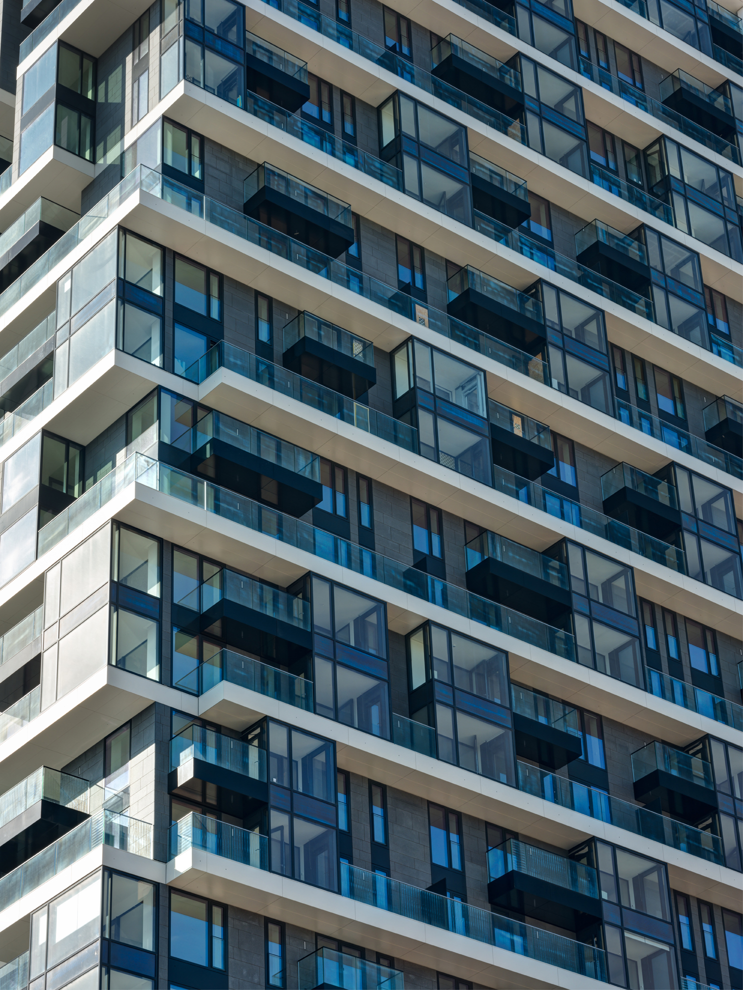 Für das Fenster-Fassadensystem bedeutet dies den Nachweis höchster Leistungsfähigkeit hinsichtlich Luftdichtheit, Schlagregendichtheit und Verhalten unter Windlast. Aufmerksamkeit forderten zudem bauphysikalische Aspekte wie der sommerliche und winterliche Wärmeschutz. Nicht zuletzt galt es, erhöhten Schallschutz sowohl zwischen den einzelnen Wohneinheiten als auch zu allen öffentlichen Bereichen herzustellen. Schließlich waren für Absturzsicherungen, aber auch für den Klemmschutz der motorisch gesteuerten Öffnungsflügel Lösungen zu finden.