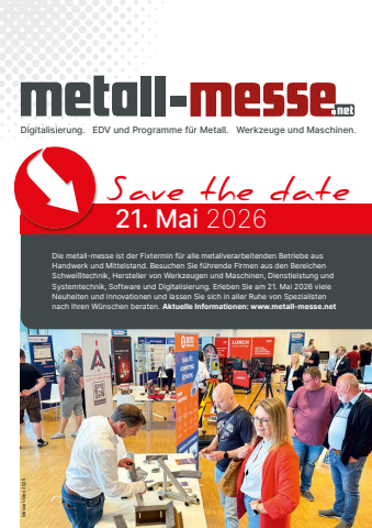 Metallgestaltung125Die metall-messe ist der Fixtermin f%u00fcr alle metallverarbeitenden Betriebe aus Handwerk und Mittelstand. Besuchen Sie f%u00fchrende Firmen aus den Bereichen Schwei%u00dftechnik, Hersteller von Werkzeugen und Maschinen, Dienstleistung und Systemtechnik, Software und Digitalisierung. Erleben Sie am 21. Mai 2026 viele Neuheiten und Innovationen und lassen Sie sich in aller Ruhe von Spezialisten nach Ihren W%u00fcnschen beraten. Aktuelle Informationen:www.metall-messe.netDigitalisierung. EDV und Programme f%u00fcr Metall. Werkzeuge und Maschinen.21. Mai 2026 Save the dateMesse Video 2025