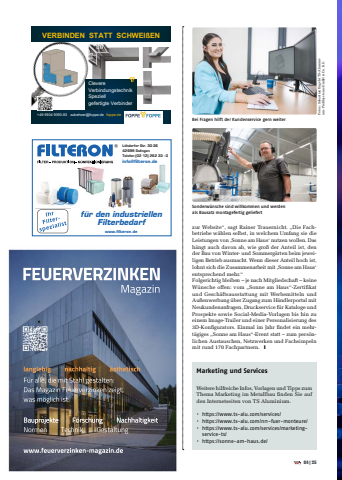zur Website%u201c, sagt Rainer Trauernicht. %u201eDie Fachbetriebe w%u00e4hlen selbst, in welchem Umfang sie die Leistungen von %u201aSonne am Haus%u2018 nutzen wollen. Das h%u00e4ngt auch davon ab, wie gro%u00df der Anteil ist, den der Bau von Winter- und Sommerg%u00e4rten beim jeweiligen Betrieb ausmacht. Wenn dieser Anteil hoch ist, lohnt sich die Zusammenarbeit mit %u201aSonne am Haus%u2018 entsprechend mehr.%u201cFolgerichtig bleiben %u2013 je nach Mitgliedschaft %u2013 keine W%u00fcnsche offen: vom %u201eSonne am Haus%u201c-Zertifikat und Gesch%u00e4ftsausstattung mit Werbemitteln und Au%u00dfenwerbung %u00fcber Zugang zum H%u00e4ndlerportal mit Neukundenanfragen, Druckservice f%u00fcr Kataloge und Prospekte sowie Social-Media-Vorlagen bis hin zu einem Image-Trailer und einer Personalisierung des 3D-Konfigurators. Einmal im Jahr findet ein mehrt%u00e4giges %u201eSonne am Haus%u201c-Event statt %u2013 zum pers%u00f6nlichen Austauschen, Netzwerken und Fachsimpeln mit rund 170 Fachpartnern. yMarketing und ServicesWeitere hilfreiche Infos, Vorlagen und Tipps zum Thema Marketing im Metallbau finden Sie auf den Internetseiten von TS Aluminium. Bei Fragen hilft der Kundenservice gern weiterSonderw%u00fcnsche sind willkommen und werden als Bausatz montagefertig geliefertFotos: Sebastian Engels/TS-Aluminium-Profilsysteme GmbH & Co. KG%u2022https://www.ts-alu.com/services/%u2022https://www.ts-alu.com/nr1-fuer-monteure/%u2022https://www.ts-alu.com/services/marketingservice-ts/%u2022https://sonne-am-haus.de/f%u00fcr den industriellen FilterbedarfL%u00f6hdorfer Str. 30-3642699 SolingenTelefon (02 12) 262 33 - 0info@fi lteron.dewww.fi lteron.deClevereVerbindungstechnikSpeziellgefertigteVerbnder+495904939393VERBINDENSTATTSCHWEI%u00dfENzubehoer@foppe.defoppede04|25