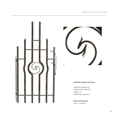 15Michele Andreoli di SovicoAusbildungsbetrieb:Atelierschmiede Harz Feldstr. 12 38855 WernigerodePforte Villa Russo110 x 5 x 200 cmMETALLGESTALTUNG