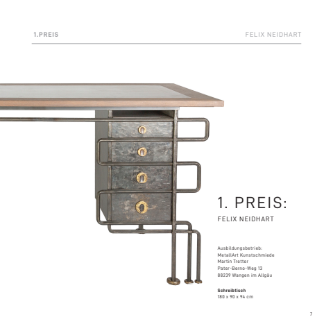 7Ausbildungsbetrieb:MetallArt Kunstschmiede Martin Tretter Pater-Berno-Weg 13 88239 Wangen im Allg%u00e4uSchreibtisch180 x 90 x 94 cm1. PREIS: FELIX NEIDHART 1.PREIS FELIX NEIDHART