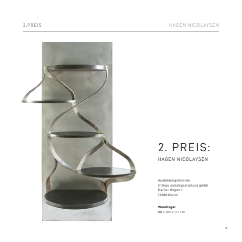 9Ausbildungsbetrieb:fittkau metallgestaltung gmbhDar%u00dfer Bogen 113088 BerlinWandregal80 x 100 x 177 cm2. PREIS: HAGEN NICOLAYSEN2.PREIS HAGEN NICOLAYSEN