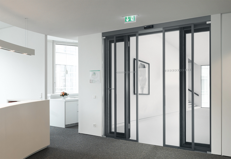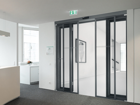 Automatische Fluchtwegschiebetür mit zugelassenem Feuerschutzabschluss als Systemkombination