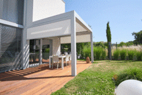 Die Pergolen aus Aluminium überzeugen mit einem modernen Design, das bereits zweimal mit dem internationalen Red Dot Design Award prämiert wurde. Die Terrassenüberdachung ist mit einem Lamellendach ausgestattet, das sich durch intelligente Sensorik an die Wetterbedingungen anpasst und sich zudem auch per App oder Fernbedienung regulieren lässt. So sorgt das Lamellendach bei Sonnenschein für angenehmes Klima und leitet zudem Regenwasser über ein integriertes Gefälle in innenliegende Regenrinnen ab. Mit einer besonders hohen Stabilität im Vergleich zu anderen Pergolen am Markt sind die Terrassenüberdachungen sehr robust und wartungsarm. Eine Pergola ist das ganze Jahr über eine Erweiterung des Wohnraums; hier lassen sich im Frühling die ersten Sonnenstrahlen des Jahres genießen, ehe die Pergola im Sommer Schatten und Schutz vor der Hitze bietet. Auch an kühlen Herbsttagen sowie im Winter ermöglichen Pergolen von Berner Living den angenehmen Aufenthalt im Freien. Die Säulen und Lamellendächer bestehen aus pulverbeschichtetem Aluminium, die Pergolen sind in drei RAL-Farben erhältlich – Tiefschwarz (RAL 9005), Anthrazit (RAL 7016) oder Verkehrsweiß (RAL 9016). Für eine individuelle Gestaltung ist die Pergola in verschiedenen Varianten lieferbar, entweder freistehend oder zur Wandmontage.