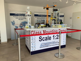 „Viele Kunden können sich nicht vorstellen, welche Möglichkeiten es im Bereich Glas- und Fassadenmontage gibt“, erläutert Geschäftsführer Günter Übelacker. „Mit unserem 3D-Modell simulieren wir Baustellensituationen, damit der Kunde ein Bild von der Montage in der Praxis bekommt.“ Das 3D-Modell bietet eine Basis, an dem mit den Heavydrive Spezialgeräten das Einsetzen von bis zu 24 Metern langen Glaselementen demonstriert wird. Auch die emissionsfreien Indoor-Glasmontage-Lösungen können detailliert vorgeführt und besprochen werden. „Wir freuen uns schon sehr auf den Austausch mit den Besuchern und sind gespannt, welche neuen Trends sich in der Branche abzeichnen“, so Günter Übelacker.