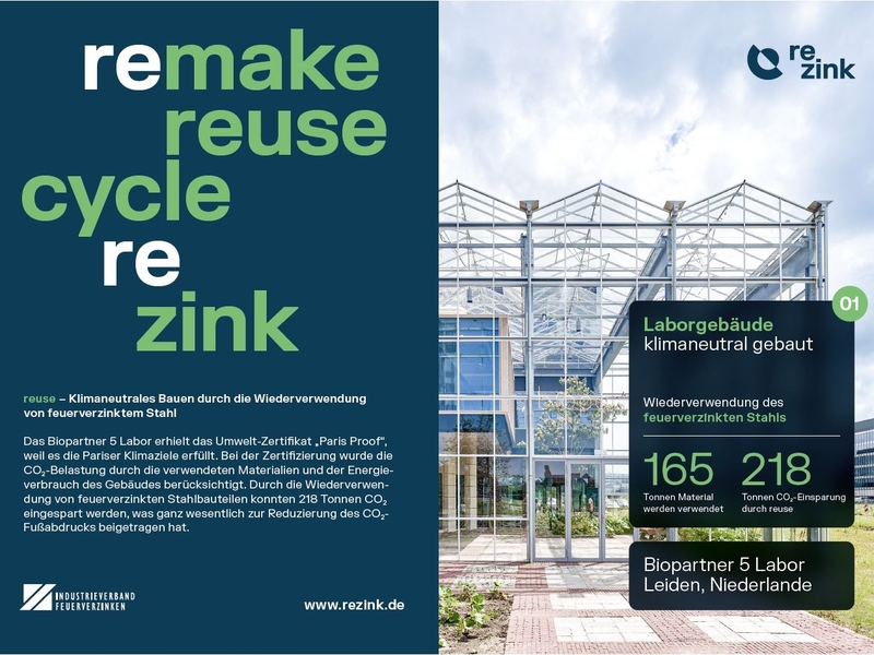 Sebastian Schiweck, Hauptgeschäftsführer des Industrieverbandes Feuerverzinken, betont die Bedeutung von feuerverzinktem Stahl und die Wichtigkeit von Investitionsanreizen: „Unsere Vision ist es, den Bausektor grüner zu gestalten und eine zirkuläre Zukunft zu schaffen sowie CO2 zu reduzieren. Feuerverzinkter Stahl als nachhaltiger Werkstoff mit langer Lebensdauer und Wiederverwendbarkeit ist dabei ein Möglichmacher der Nachhaltigkeitstransformation. Zum Beispiel können Bauteile aus feuerverzinktem Stahl in neuen Projekten ohne Qualitätsverlust wiederverwendet werden, was Ressourcen schont und Abfall minimiert. Wir appellieren daher an die Politik, diesen Werkstoff verstärkt in den Fokus zu rücken. Wir plädieren außerdem dafür, Abschreibmöglichkeiten auf unbewegliche Wirtschaftsgüter einzuführen, um Investitionsanreize auszulösen.“