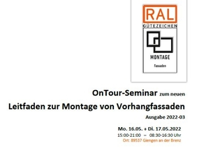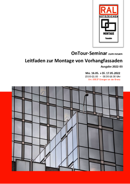 Die Neuerungen des Leitfadens zur Montage von Vorhangfassaden ziehen sich praktisch durch alle Kapitel: von den allgemeinen Anforderungen über die bauphysikalischen Grundlagen, die Befestigung und Abdichtung bis zur praktischen Ausführung. „Melden Sie sich jetzt noch an, denn die Teilnehmerzahl ist begrenzt“, so Ulrike Döbel von der Gütegemeinschaft Fenster, Fassaden und Haustüren.