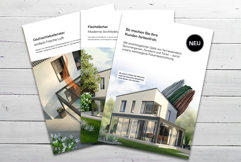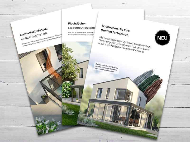 Das Prospekt „Flachdächer“ zeigt maßgeschneiderte Dachformen in ihrer individuellen Umsetzung. Spezifische Produktvorteile finden sich ebenso wie verschiedene Möglichkeiten, um ein Terrassendach zu einem Sommergarten zu erweitern. Wie sich ein Hitzestau effizient und einfach ablüften lässt, veranschaulicht das Prospekt „Dachschiebefenster“ kompakt auf sechs Seiten. Für die individuelle Gestaltung sorgen zwölf aktuelle Trendfarben – übersichtlich im Farben-Prospekt präsentiert.