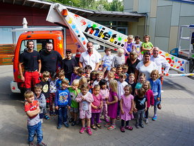 Im Juni dieses Jahres unterstützte der mateco Standort Köln die Gesamtschule Bergheim bei ihrem Projekt „Schule ohne Rassismus“ – Schule mit Courage“. Im Einsatz war eine Scheren-Arbeitsbühne, die die Schüler nutzten um die Fenster der Schule mit ihren Handabdrücken zu bemalen. Zusätzlich wurde eine LKW-Arbeitsbühne mit bunten Aufklebern beklebt, die ab sofort als Tappi für soziale Projekte im Großraum Köln genutzt wird. Dies war nicht nur für die Schüler/innen ein großer Spaß sondern auch die Lehrerinnen machten mit Begeisterung mit. Und auch der Bundestagsabgeordnete Dr. Georg Kippels und Dezernent Klaus-Hermann Rössler der Stadt Bergheim waren mit dabei. Auch am mateco-Standort in Nürnberg gibt es ab sofort einen Tappi. Zusammen mit den Kindern des Katholischen Kindergarten St. Theresia Erlangen, ist der 3. Tappi entstanden. Gemeinsam mit den Erzieherinnen und den Mitarbeitern der mateco Nürnberg klebten die Kinder ihre selbst ausgemalten Hände sowie Farbkleckse auf die LKW-Arbeitsbühne von mateco. Ab sofort kann der Tappi auch im Umkreis von Nürnberg für soziale Projekte genutzt werden.